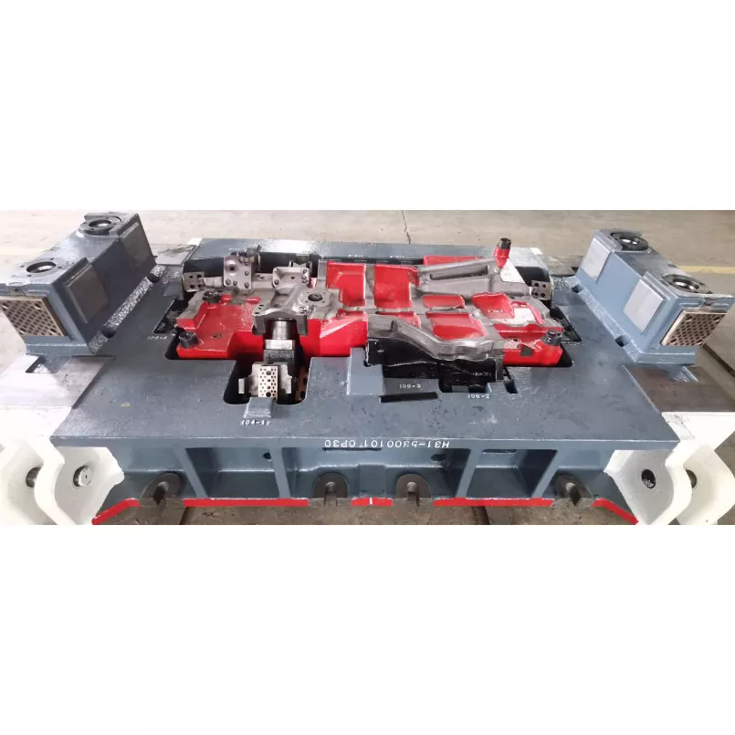 تستخدم قوالب ختم مجموعة اللوحة الأمامية للسيارات تشكيل القطع الزائد وهيكل جانبي قابل للتعديل. ومن خلال دمجه مع تحليل CAE وتحسين العملية، فإنه يحل مشكلات مثل التجاعيد والتشققات، ويحقق دقة السطح في حدود ±0.05 مم، مما يضمن التوافق مع المكونات المجاورة.